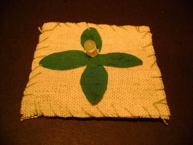 10. ahora tome el último cuadrado de tela con flores pegadas en él y coser a la Plaza de LED. (ver imagen).
