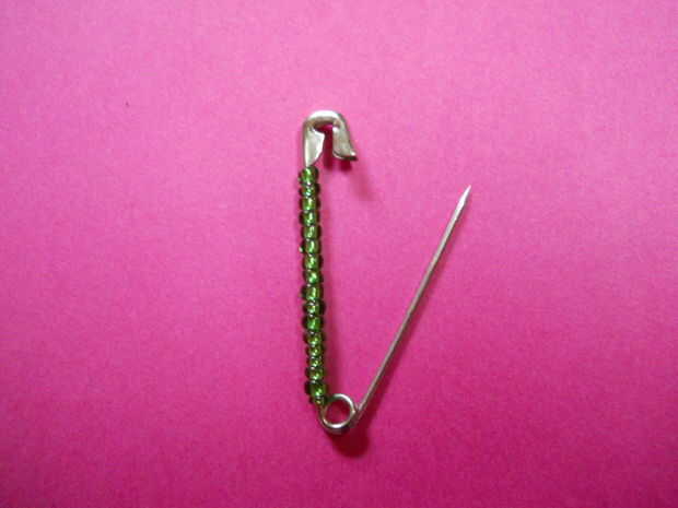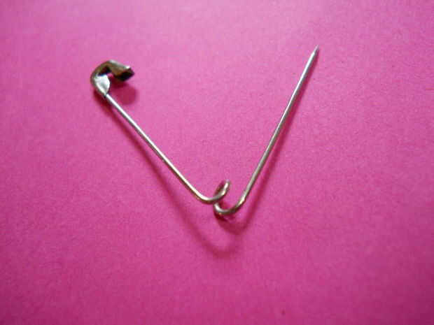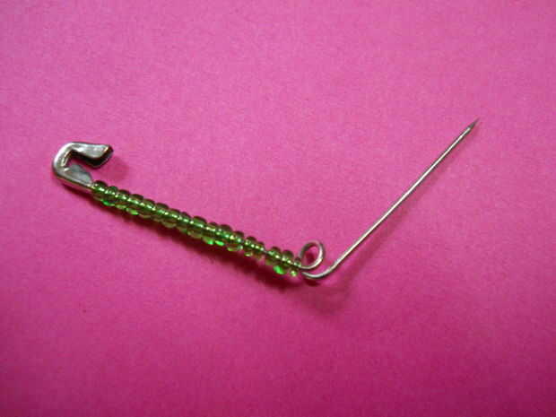 Ahora tome un perno de seguridad y utilizando alicates abre el nudo en su parte inferior como se muestra