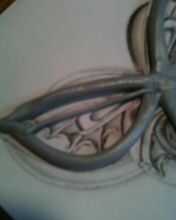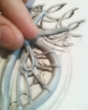 Ahora toma la pieza delgada otra vez y hacer una curva donde la curva/loopy es. Utilice su cuchillo de mantequilla para mezclar y cortar las piezas.