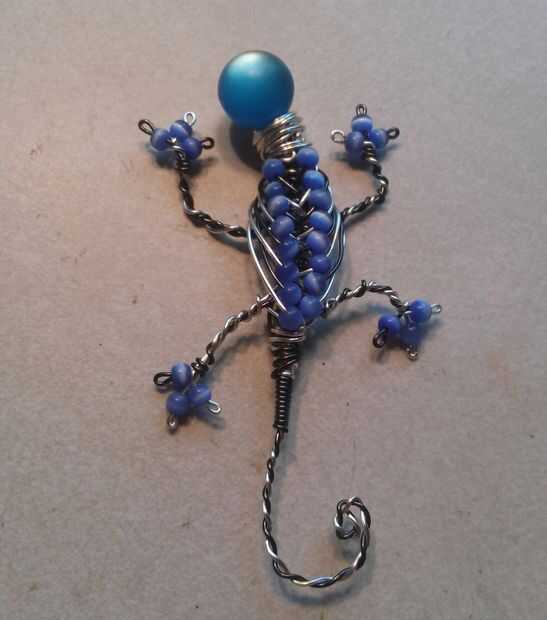 Cómo crear un broche lagarto usando alambre, abalorios pequeños y un botón de abrigo viejo.