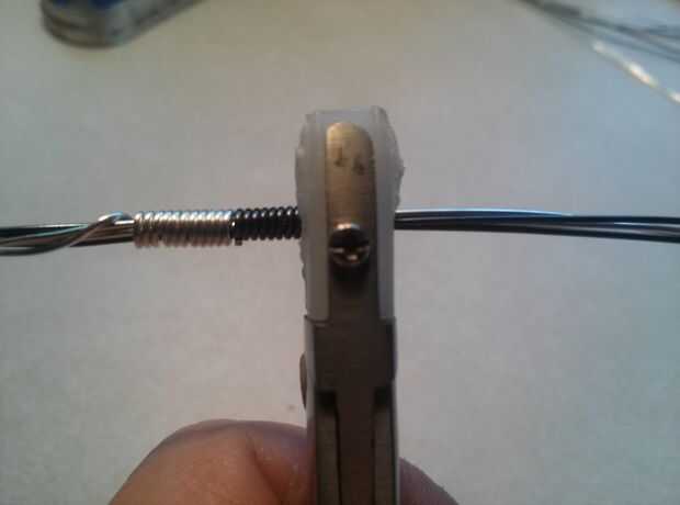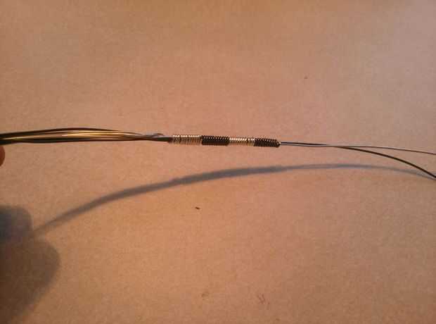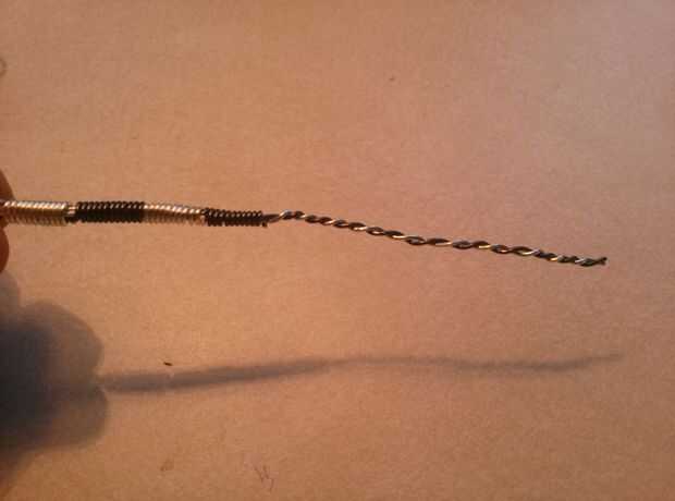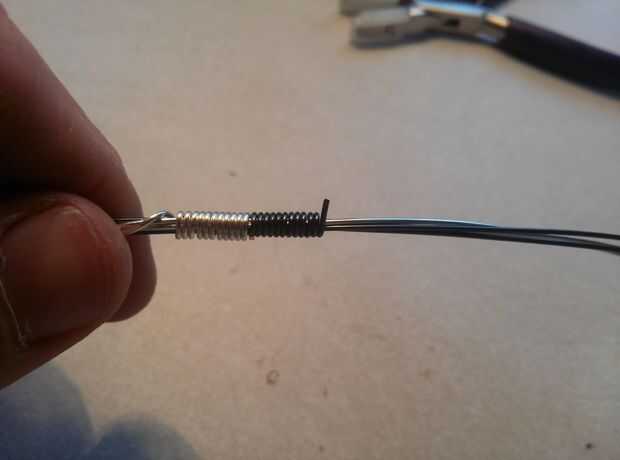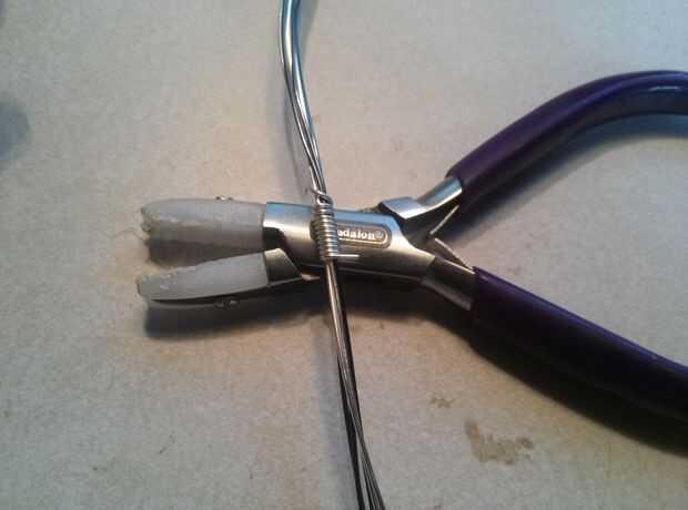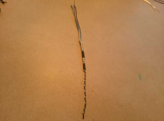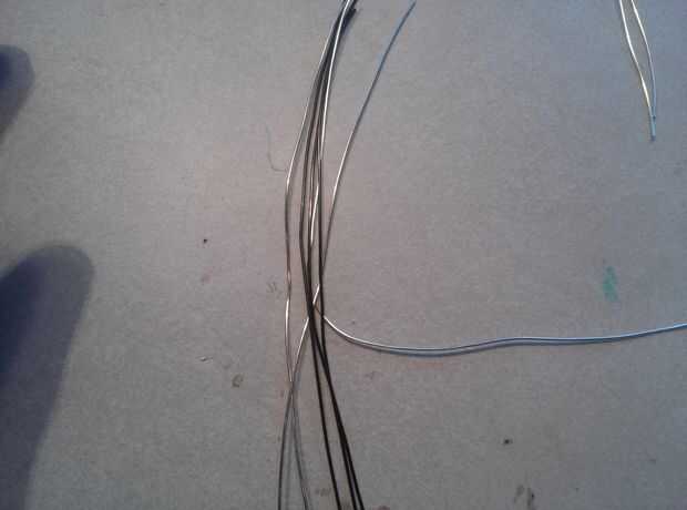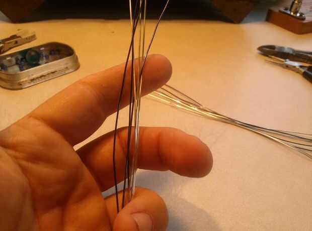 Recoger 6 de los cables y reservar el otro 8. Encontrar que la mitad marca de doblar un alambre en forma de "L". Ahora Inicio un abrigo apretado alrededor del grupo de alambre. Esto puede hacerse muy fácilmente con la mano hasta llegar a la última poco. Ahora tu alicate para enjuagar la punta hacia abajo para evitar meter no deseados. A continuación coge el siguiente cable deseado en la dirección de la primera envoltura y hacer lo mismo (generalmente escojo el alambre en el extremo de la cinta anterior para que se vea un poco más uniforme). Llevar a cabo hasta que estás abajo a 2 hilos y usted puede girar juntos. Al final de esta fase usted debe tener lo que se asemeja a una escoba pequeña.