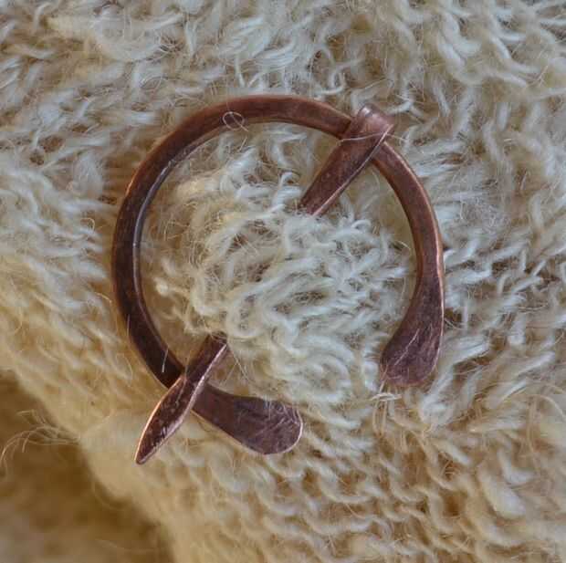 Broche celta, también llamado broche penannular, hecha con un trozo de alambre de cobre grueso.