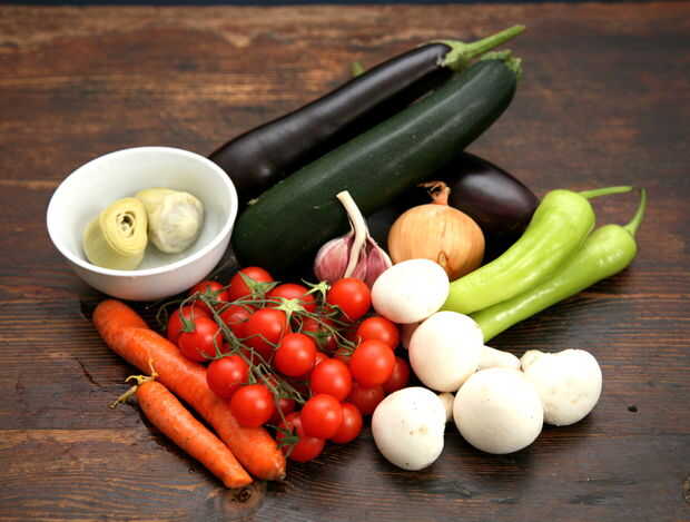 Creo que aceitunas y tomates secos añadir un toque agradable. Tofu y queso parrilla-capaz (como el Halloumi) debería funcionar así.