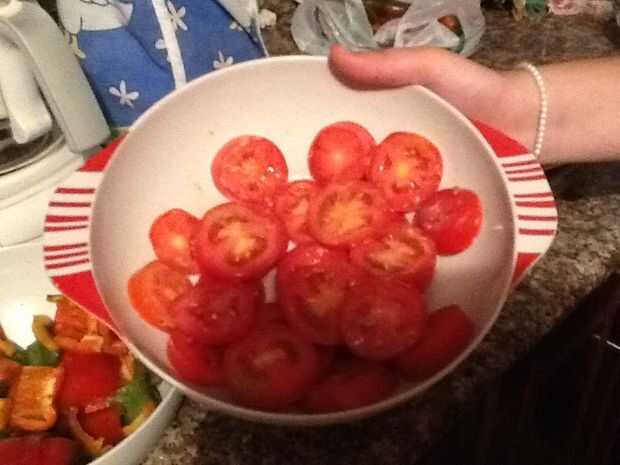 Sirve 4 brochetas. O un tipo gordo como yo.Ingredientes2 muslos de pollo1 bolsa de ensalada1 pimientoolivos 2 puñados12 tomates pequeñosla mitad una cebolla roja en rodajas3 dientes de ajo (ajo grandes chefs)Paso 1: Asar la carne Carne con piel gusto