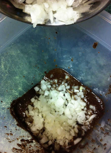 Añadir la cebolla picada en el paso 5 y agregue el pollo (u otra carne, si se utiliza).