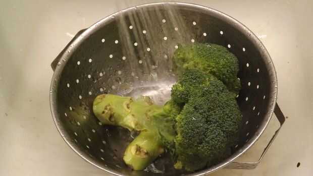 BRÓCOLI al horno con aceite de ajo y de la sésamo (1 / 3 paso)