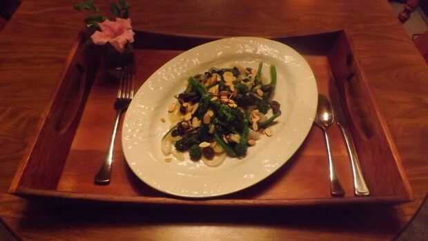 BRÓCOLI-RABE (GRELOS) cocinado en aceite de oliva con aceitunas negras, ajo y chalotas