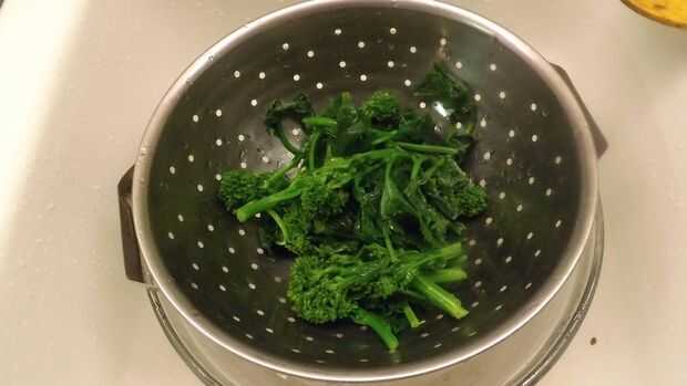 Como se señaló anteriormente, brócoli Rabe o grelos es una verde amarga (IE., tiene una "mordida"). Cocinar durante 1 minuto en agua hirviendo grandemente reduce el amargor. Muchas personas prefieren cocinar en agua con sal, pero estoy tratando de reducir mi consumo de sodio, y creo que el Rabe sabe bien después de tomar un baño en agua hirviendo de la llanura!