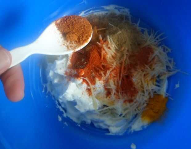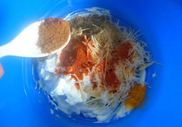 -Añadir el garam masala, el tandoori masala, la sal y mezclar cada cosa.