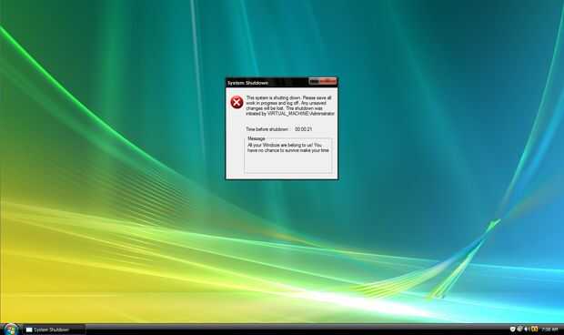 Shutdown.exe -s -t 30 - c "Tu PC se apagará en 30 segundos."