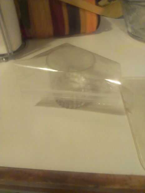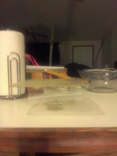 tomar la taza de agua y coloque la bolsita de plástico encima y luego una tabla de cortar