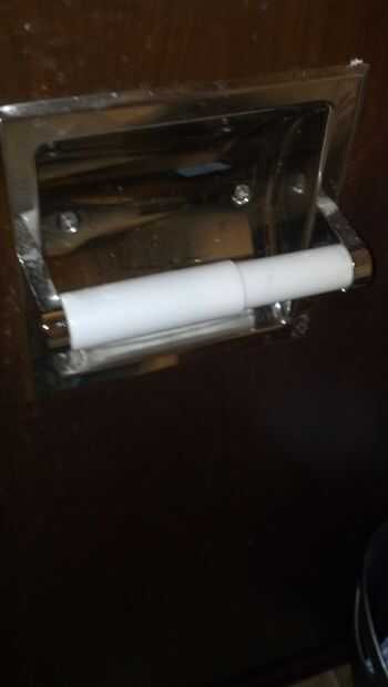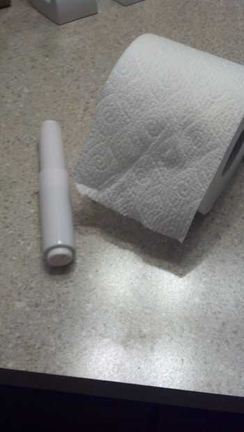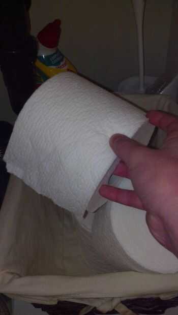 Primero tomar el rollo de papel higiénico y el poste hacia fuera. Vuelva a colocar el rollo de papel higiénico en el gabinete del fregadero. Volver a colocar el polo.