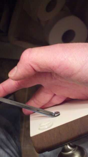 brecha. Inserte la primera banda de caucho alrededor del tornillo en un lado. Estiramiento en el otro tornillo. Hacer lo mismo con la segunda banda de goma.