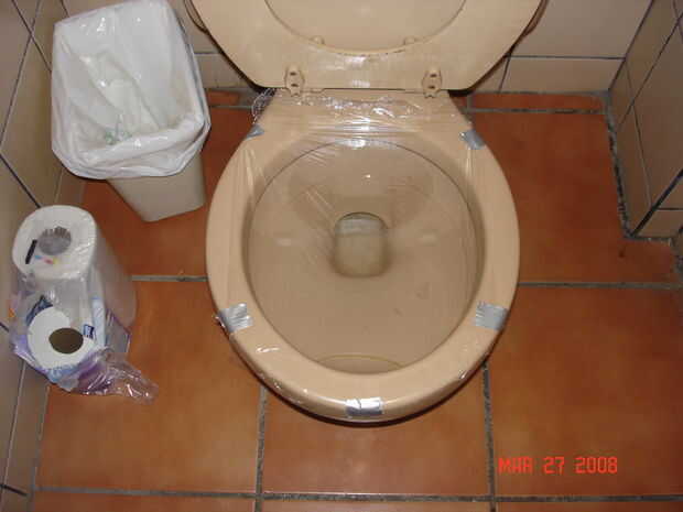 C. a continuación, coloque una hoja de envoltura de plástico a lo largo en el baño como en imagen 3.
