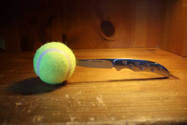 Para aquellos que no quieren arruinar un buen libro para una caja fuerte...Materiales:2 pelotas de tenis1 cúter o navaja pequeña SuizaBien, comencemos!Paso 1: Primero (y último) incisión Empezar haciendo un 1,5 pulgadas (unos 4cm) corte a lo largo de