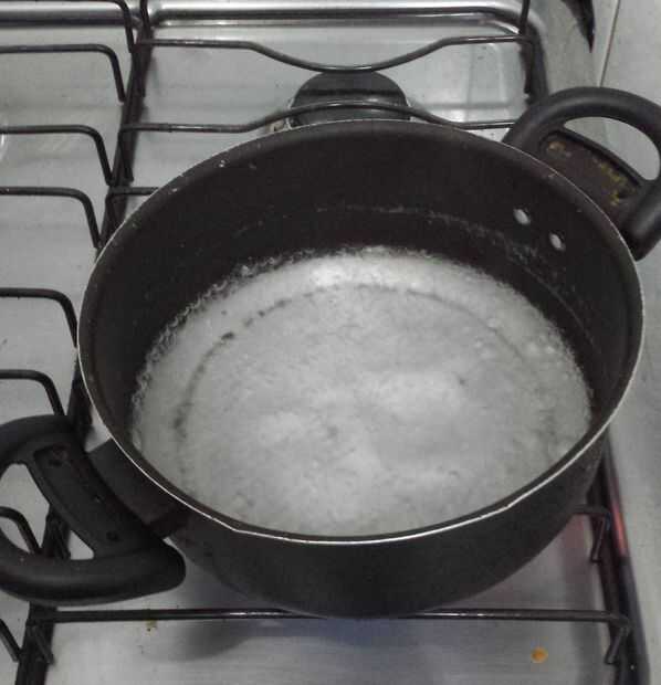 Medir la cantidad de agua según instrucciones del fabricante de gelatina y llevar a ebullición.
