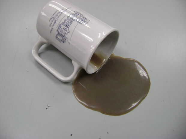 café derramado del Faux es una prop DIY fácil, realista diseñada para inspirar pánico e inducen a malas palabras.Basta con mirar. Usted probablemente está rodeado por metas irresistibles, que merecen: el quisquilloso friki-de-un-compañero de piso y s