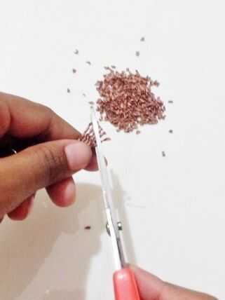 Usando el cúter cortar el papel en 1mm finas tiras.