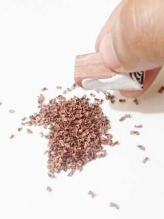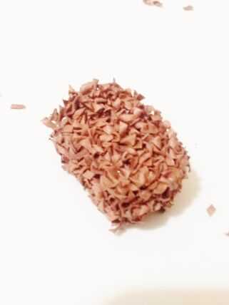 cubrir la figura con pegamento y cubrirla con chocolate picado. Podría dejarlo como esta o también podría decorar con una tira de papel espiral de chocolate oscuro.