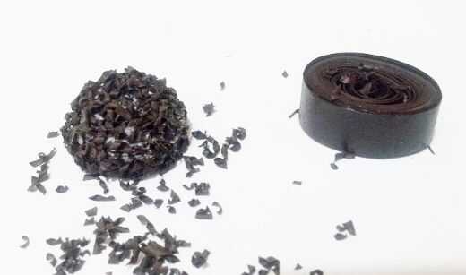 Ahora cubra ambas formas con pegamento y decorar con chispitas de chocolate oscuros.