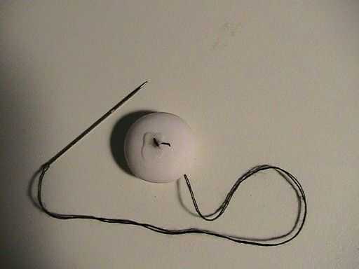 a enhebrar la aguja a través del mento (o mentos) y un buen nudo
