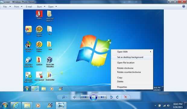 Utilizando la barra de tareas, ir la la captura de pantalla que hace de la pantalla principal en el paso 1. Haga clic derecho y establecer como fondo de escritorio.