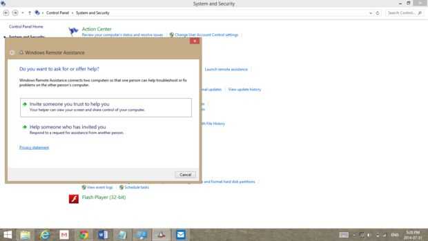 Necesita tener su ordenador y ordenador de la víctima delante de usted. PS. Asegúrese de que ambos están conectados a internet. Utilizar un teléfono celular como un punto de acceso. En primer lugar, en computadora de la víctima, abrir 'Panel de Control' y haga clic en "Sistema y seguridad". A continuación, haga clic en 'Permitir acceso remoto'. Entonces verá una ventana emergente y una casilla de verificación en él. Active la casilla y pulse 'Aceptar'. Entonces una vez que se cierra, en control de clic en el panel (debe ser en "Sistema y seguridad") 'Iniciar asistencia remota'. En la ventana que se acaba, seleccione 'Invitar a alguien de que confianza para ayudarle'. Una vez que hayas hecho esto, haga clic en 'Utilizar el correo electrónico para enviar una invitación'. Ahora, si el ordenador de la víctima tiene el programa denominado 'Outlook' y Outlook está configurado como el programa predeterminado para el control de correo, debe abrir outlook con un mensaje de correo electrónico y el adjunto que es automáticamente, y probablemente no pedirá contraseña de correo de la víctima. En este caso, todo lo que tienes que hacer es dirección de correo electrónico a ti mismo y haga clic en enviar. Y si ese equipo no tiene Outlook, debe abrir el registro de correo electrónico en la página, y luego tienes que iniciar sesión en su correo electrónico. Después de eso, si has hecho todo bien, una pequeña ventana debe saltar con un revoltijo de letras y números que es una contraseña. NO CIERRE ESTA VENTANA. Ahora es el momento para su equipo.