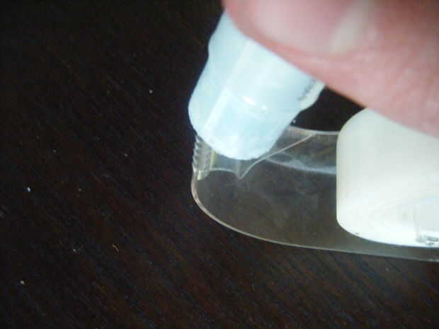 Poner una pequeña cantidad de pegamento en la parte donde se pega la cinta. NOTA: ESTO NO FUNCIONARÁ CON PEGAMENTO LÍQUIDO. Debe utilizar un palillo de pegamento.