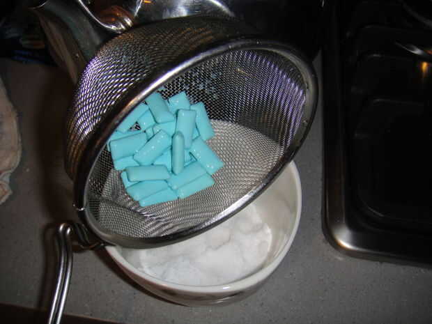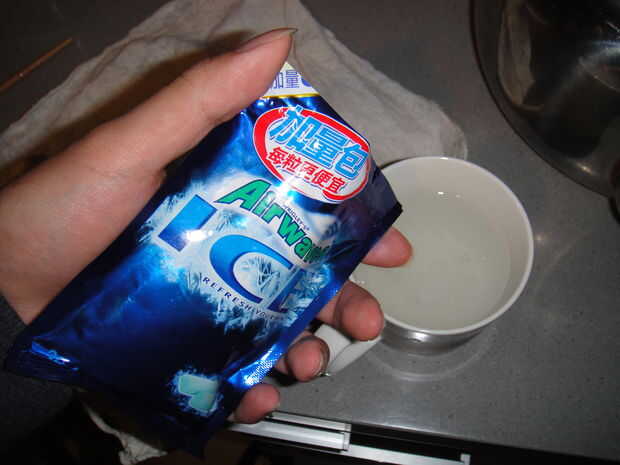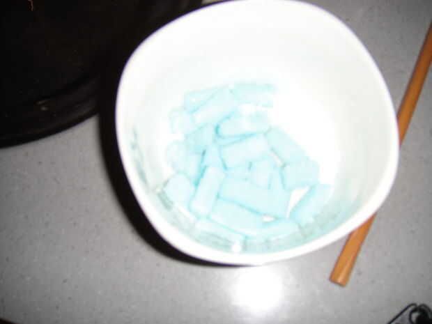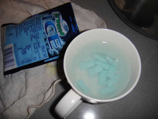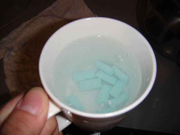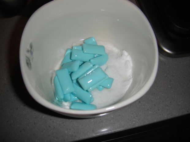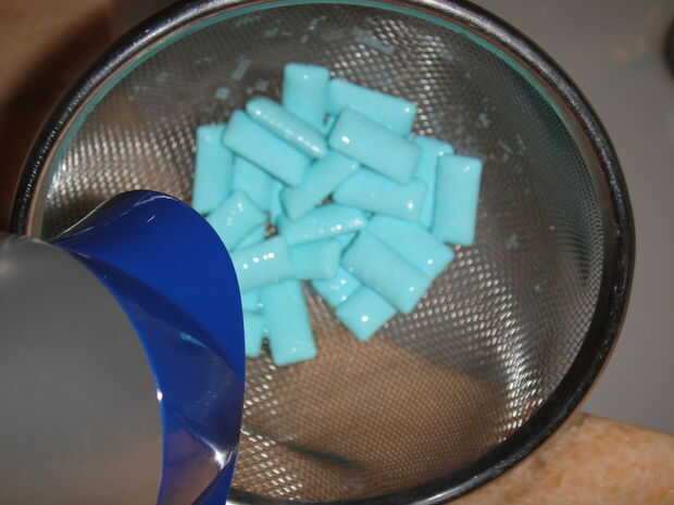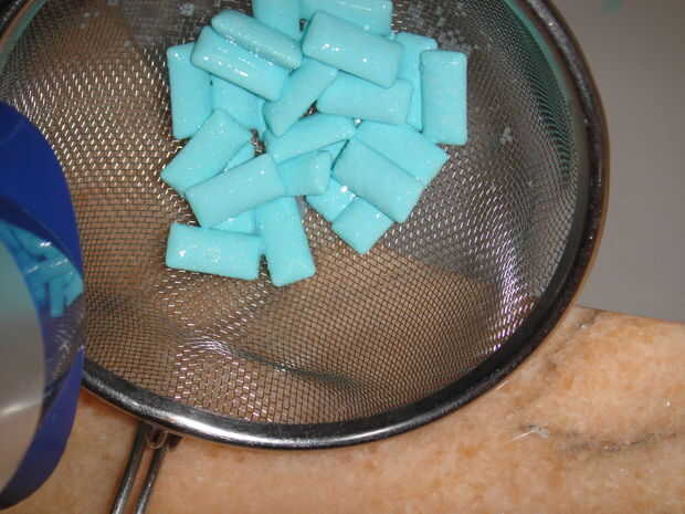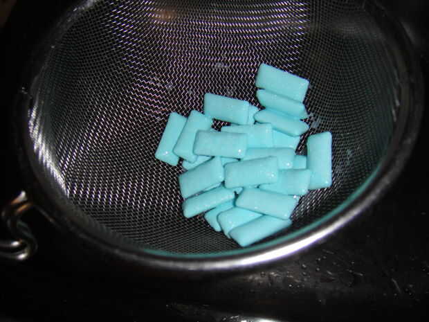 throw it into another dry cup filled up with salt. la goma es pegajosa ahora, así que probablemente palo encima de la sal. mezclar bien, y el caramelo está listo para servir. les digo es el tipo de dulces, y tendrá: P