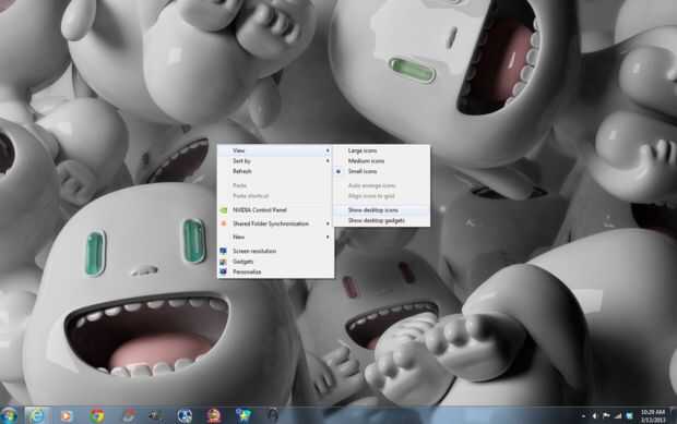 Paso 3 - Haga clic derecho en el escritorio y seleccione "ver", quitar la marca de verificación junto a "Mostrar iconos del escritorio", esto ocultará todos los iconos en el escritorio. Para ellos volver otra vez después de la broma a seleccionar "Mostrar iconos del escritorio" y viola! Los iconos son nuevamente como nunca se habían ido.