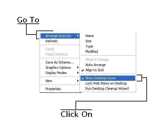 No habrá iconos en el escritorio y no regresan hasta que usted haga clic en "Mostrar los iconos de escritorio" nuevo