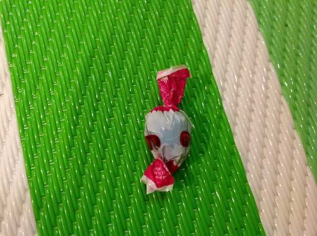 Así que esto es un poco duro así que toma la envoltura y envolver totalmente sus dulces así que gire si bien