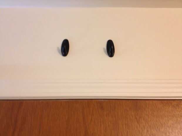 Coloque los ganchos de 3M aproximadamente dos pulgadas por encima del marco de la puerta según instrucciones que se encuentran en el paquete. La distancia entre los soportes depende del tamaño del contenedor que está utilizando; alrededor de 6 pulgadas debe ser finas. Use un taburete o escalera si es necesario.