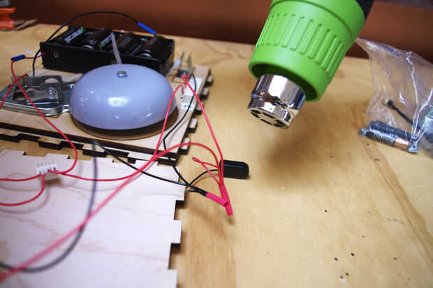 Un querido compañero de trabajo está regresando de Canadá pronto y en su honor he creado el cuadro de broma de cuerno de coche. Básicamente, cuando se presiona el botón rojo, y un LED parpadea indicando que hay treinta segundos en para ocultar el cua
