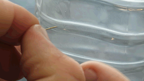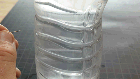 Agarra una botella de agua (el más alto, mejor) y coge una chincheta, Chincheta o pin de costura para meter unos agujeros en ella. Con la tapa todavía bien, meter varios agujeros bastante cerca de la parte inferior. Si los agujeros son pequeños agua suficiente, no debe fluir hacia fuera excepto cuando usted apriete la botella. Si el agua está fluyendo hacia fuera, puede que necesite un pin más pequeños o para no meter tan profundamente.