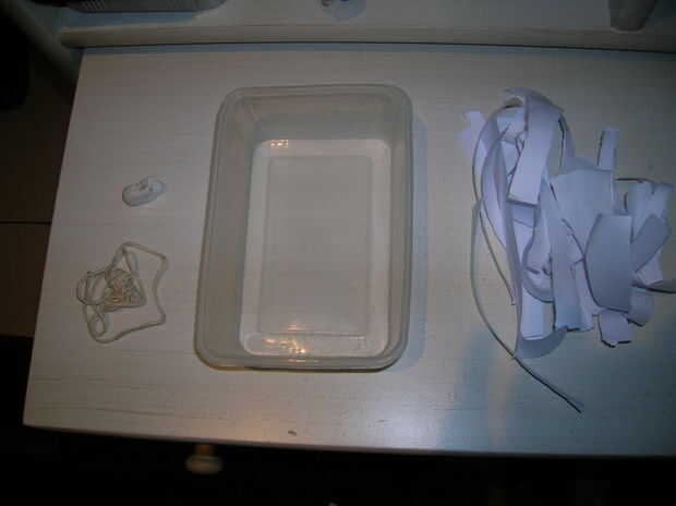 primero tome un pedazo de cadena, una caja o cubo, alguna cinta o prestick y corce algo de miedo o de agua.