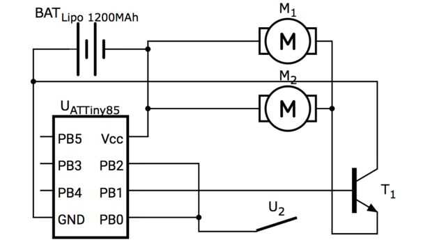 - 10 uF Capacitor -esto no es necesario para el circuito real, sino para programación del ATTiny.