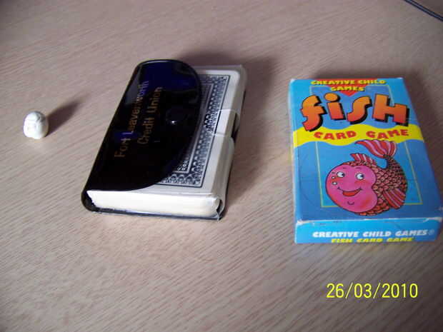 Necesita: -2 paquetes de naipes diferentes (como el solitario y tarjetas de pokemon XD) pero estas tarjetas deben ser el mismas tamaño - y esa mirada pegajosa cosa (o algo más si tienes una mejor idea)