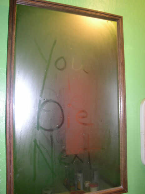 Cuando tu víctima desprevenida es tomar una buena ducha caliente, el vapor de niebla sólo las partes del espejo que no se ha escrito sobre hacer tu mensaje secreto aparecen sobrenaturalmente!