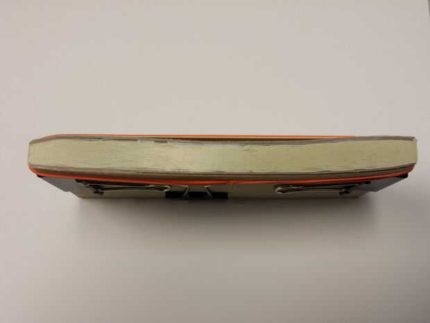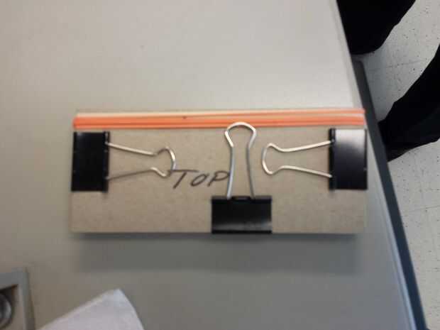 -Utilizando enlace clips y gomas, abrazadera de la pila de la izquierda, derecha y lados de la pila de la parte inferior mientras usando bandas de goma para asegurar el borde superior.