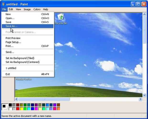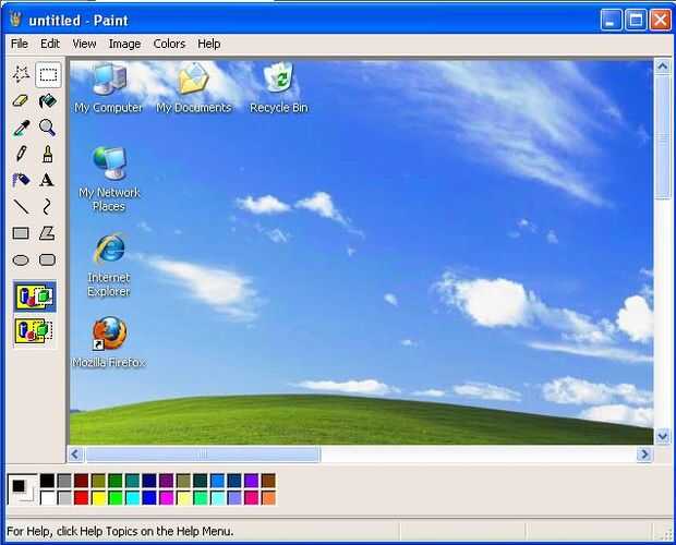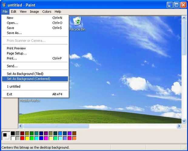 Una vez que hayas hecho esto, pulse la tecla "Impr Pant". En algunos teclados, es etiquetado como PrtScn o algo similar. Presionándolo a pone una imagen de la pantalla en el portapapeles. iniciar Microsoft paint, elija Editar/pegar, y ahora debería ver una imagen del escritorio entero. Guardar la imagen en el disco duro, a continuación, elija archivo/establecer como fondo (centrado)