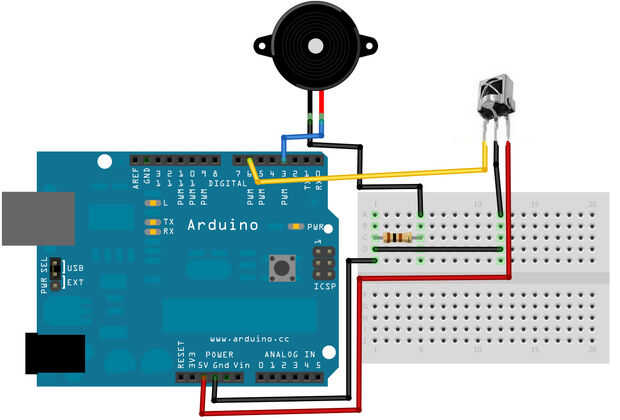 Este proyecto ayuda a crear un TV Nuissance. Cada vez que el control remoto de TV es utilizado el piezoeléctrico zumbador emitirá un sonido molesto. Que deja la gente preguntando por qué la TV hace tan molesto ruido mientras tanto te va ser tratando de no reír!