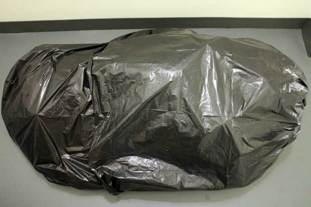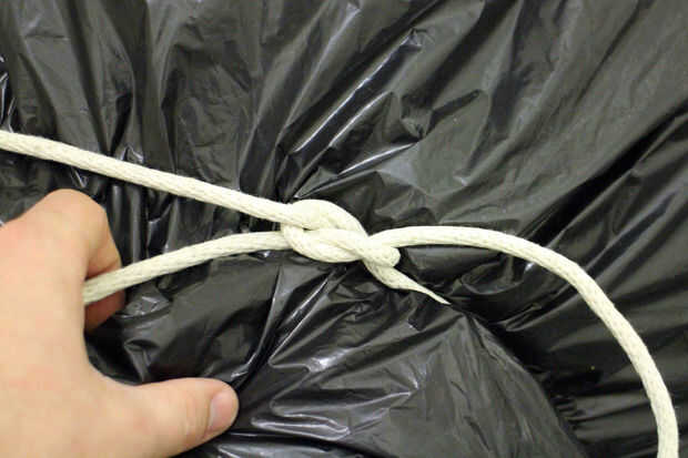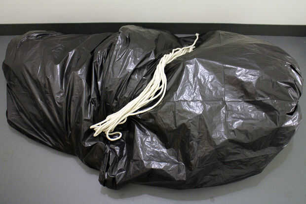 Cuerda viento en bolsas de basura en lugares selectos para dar la apariencia de un cuerpo, prestando especial atención a disminuir el cuerpo alrededor de las piernas y manteniendo la forma esférica de la cabeza.