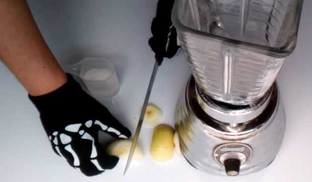 Paso 6: Tomar una cebolla, cortar los bordes y los llevamos a la licuadora con un poco de agua.