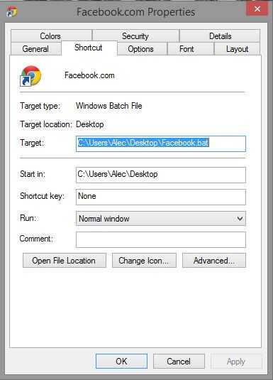 1) haga clic derecho en el acceso directo y haga clic en "Propiedades"
