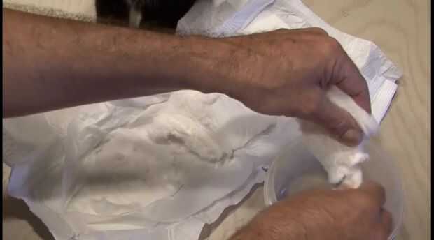 Utilizando las tijeras o navaja, corte a través de la línea del pañal. En el interior se encuentra al precioso "cristales de pee pee" que en realidad se llama poliacrilato de sodio. Retire el algodón dentro de piezas rasgados hacia fuera y colocando en un recipiente cubierto. También descarga en cualquiera de los cristales que se pueden encontrar en la parte inferior del pañal. Ahora agitarlo bien buena para un rato. Quitar el algodón y deberás acabar con sobre un puñado de cristales.