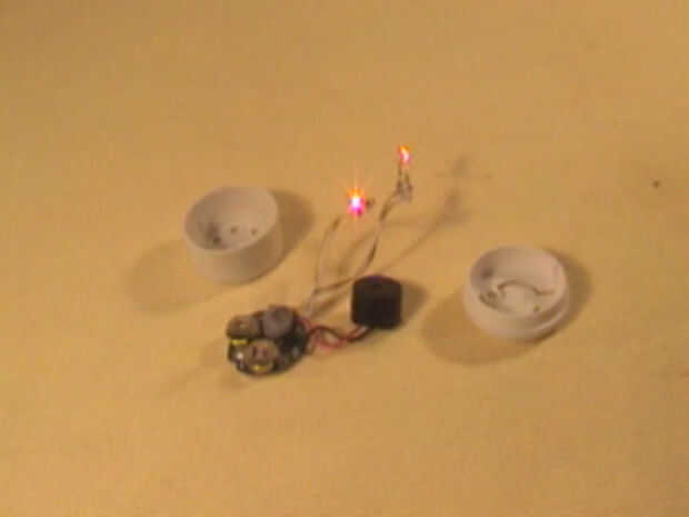 En el interior se encuentra una pequeña caja con un botón + alambre + leds