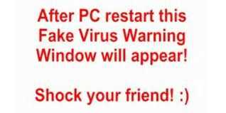 Un virus falso, disfrazando como un anti virus...Paso 1: Hacer el programa... Abrir Bloc de notasEscriba (o copiar) este código:deecho.echo.Eco Animus Anti-Virus Portable (C)echo % hora % % fecha %Eco registrado 6.8.3.837Eco control % cd % para el vi