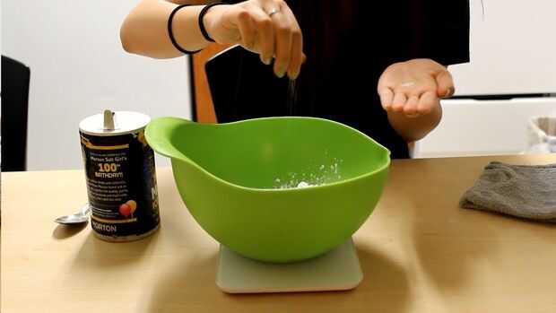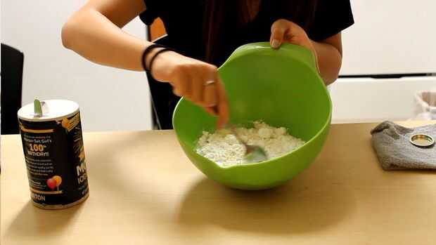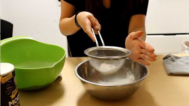 Primero, pero todos sus ingredientes secos en un bol. Los ingredientes secos para esta receta son la harina de almendra, el azúcar, la pizca de sal y el polvo de wasabi. Asegúrese de que los ingredientes se mezclan bien, luego tamizar la mezcla varias veces para eliminar grumos.