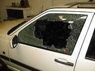 a un camión de auxilio de piezas de auto y la ventana lateral más barata se puede encontrar, a veces le dará para libre! Comprarlo, y luego romperlo. Barrer los pedacitos y tomar a su coche de objetivos. Baje la ventana y extendió el vidrio en el asiento y el suelo alrededor de la ventana.